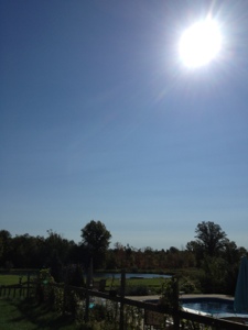 Not a Chemtrail or cloud in sight! Crisp Fall day is ahead. Slight tint on the leaves. Was only 38 degrees this am. Thinking about closing pool and corn harvest. 47 days til election. Pls consider voting Mitt.