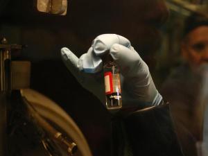 A vial containing less than 1 milliliter of mustard agent is prepared for analysis