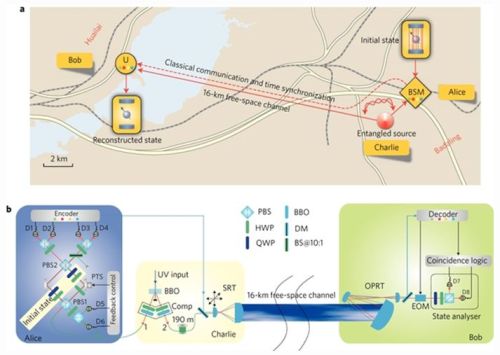 Scientists in China have succeeded in teleporting information between photons further than ever before. They transported quantum information over a free space distance of 16 km (10 miles), much further than the few hundred meters previously achieved, which brings us closer to transmitting information over long distances without the need for a traditional signal.http://www.physorg.com/news193551675.html