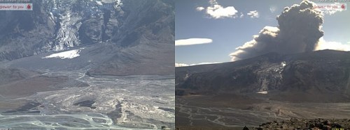 Vulcanologist have been study long enough to know what to expect. We’ve all heard the predictions that no one can predict anything, but who would predict that with in about an half and a half , the white gas like substance has dissipated in these time stamped photos from Google. How long has it taken for the ash to dissipate the airspace in Europe? Oh, that’s right, IT HAS NOT.
